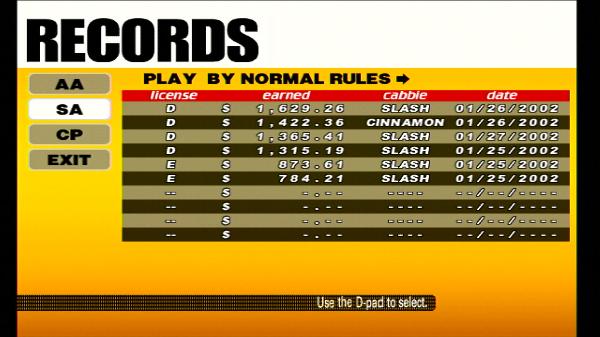 August 31st, 2025 - VMU #1 by CMA THE DOPE MAN You are currently on: PAGE 2 Page 1 | Page 2 | Page 3 | Page 4 | Page 5 Let's dig into Crazy Taxi 2. It looks like previous owner was a Slash fan Just based off the score date stamps, it looks like previous owner last played Crazy Taxi 2 at the end of January 2002. Some of the date stamps are from 1998 (explained this on the previous page) so these could be from any year/time. It seems like the previous owner played this game over the course of a week. Perhaps this was a rental? January 25th, 2002 was a Friday and the 30th was a Wednesday, so this is plausible. Wonder how much in late fees they racked up. The 1998 date stamps make me think that perhaps the previous owner rented the game again at a later date, after the clock battery died. We will never know. Next up, Heavy Metal Geomatrix! I can't say I've heard of or played this game before. This is a new one for me. The gameplay reminds me of Virtual-On for the Sega Saturn, but without the mechs. Seems like the previous owner put a little more time into this game. Wow they really sucked at 323 lol. In Heavy Metal it makes you select a character before it lets you look at any high scores. I picked a few different characters to see if these scores were per character, but they stayed the same regardless of who I picked. Not much more I can say about this one. Next up, Alone in the Dark: The New Nightmare! Looks like we got three different save files: I: Carnby Terrace 7: Carnby 1st F Corridor 2: Carnby Cellar Loading up the first save, spawns me here: Honestly I can't say that I am a fan of Alone in the Dark and games like it (go ahead, send the death threats). Tank controls are pretty miserable. See ya on the next page!