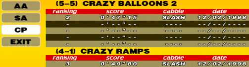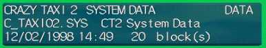 Sorry for the spoiler here, but for Crazy Taxi 2 this save is actually just a copy from bank 3. All of the Crazy Pyramid challenges and scores are the exact same. Nothing to see here.