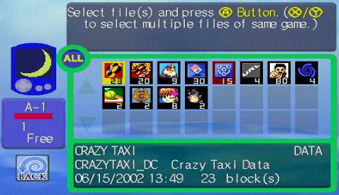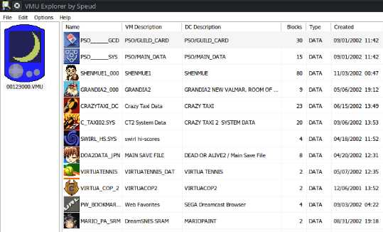 October 8th, 2025 - VMU #2 by CMA THE DOPE MAN You are currently on: PAGE 1 Page 1 | Page 2 | Page 3 | Page 4 Howdy folks. On today's post, we got a good one. If you missed the previous post, click here to give it a good read. We have a clear blue Sega OEM VMU, model HKT-7000. I found this one at a GameXchange store in Lexington, KY back in May 2025. The guy at the counter had no fuckin' clue what this thing was when I went to buy it lol. I told him it was a Tamagachi. Disregard the white label with the number on it, that is something I added as I'm trying to be better about keeping track of VMUs (I have created a spreadsheet to keep track of them). The clear translucent blue shell reminds me of those rock candy things on a stick I used to see all the time as a kid. I believe this particular color (along with pretty much all the ones that are not the standard white) were ones that were sold individually rather than bundled with a console, as seen here: I'm using my standard Dreamcast test setup. This consists of a Sega Dreamcast Sports console with a GDEMU w/ 512GB SD Card + DreamPSU + BBA, using my "COPY VMU" which I will explain shortly. I am using an HDMI adapter and a USB capture card for screen grabs. Anyways, let's cut the bullshit and dig in. Here's the money shot: On this VMU we have: - Phantasy Star Online Guild Card + Main Data (!!!) - Shenmue - Grandia 2 - Crazy Taxi - Crazy Taxi 2 - Sega Swirl - Dead or Alive 2 - Virtua Tennis - Virtua Cop 2 - PlanetWeb Browser Favorites - DreamSNES SRAM Save Below is the full metadata from VMU Explorer: Okay, there's a lot to unpack here. We got a PSO character + guild card, some web browser favorites/bookmarks, an emulator SRAM save state, and some absolute banger games on this one. It looks like this VMU was last used in November 2002. I like the cool moon icon that they used, as well as blue VMU icon that they used. Blue VMU icon for a blue VMU, makes sense to me. For the PSO character, I'm not sure if this is a V1 or V2 character. We can decrypt the save files to get the full character details, then re-encrypt it with a SNAK (Serial Number & Access Key) that I own to give the long-lost character a test drive on Sylverant. For the sake of suspense, I'm going to do PSO last. See ya on the next page.