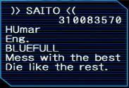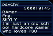 October 8th, 2025 - VMU #2 by CMA THE DOPE MAN You are currently on: PAGE 4 Page 1 | Page 2 | Page 3 | Page 4 Time to re-encrypt with my genuine USA V1 SNAK that I'm not gonna show you. More than likely I will have to upgrade it to V2 when I go to take it online, as all my actual consoles that I play online with have V2 SNAKs saved in the Dreamcast motherboard flash. I'm going to be loading this character on the console I usually play on, my modded VA2 Dreamcast with the smoke grey shell and modem (if you ever see a guy on PSO named 'CMA' that's me, and I'm playing on this console). Now it's time to copy the re-encrypted PSO files back over to the COPY VMU. To do this, I use a few things: Dreamcast Broadband Adapter (BBA), Windows VM running DC-TOOL GUI, a CDI copy of DC-LOAD IP to run on the Dreamcast. I'm now loading up the PSO Patcher boot disc first, then putting in my stock USA PSO V2 disc, that way it strips out the V2 frozen dialing screen once I connect to Sylverant. For those that don't know, PSO V2 on Dreamcast required you to use a credit card (front artwork even says 'Credit Card Required for Online Play'). If you connect to a private server nowdays using only a stock V2 disc, the screen will freeze as soon as it finishes the connection. The PSO Patcher boot disc strips out the credit card check in PSO V2, letting the game finish the connection and allow you to, uh, actually play the damn game lol. From my testing, you cannot just use an Ives patched disc, as it won't accept the SNAK for whatever reason. Upgrading the character from V1 to V2... As far as I'm aware this doesn't make any significant changes to the character itself. All stats and items stay the same. V2 just allows you to do more stuff and get more/different items (more or less). Also, for those wonder what the hell 'V1' and 'V2' are, these are the two different versions of Phantasy Star Online (PSO) that came out on the Sega Dreamcast. V1 came out first in 2000, V2 came out at the tail end of 2001. If you were already playing on V1 and later bought PSO V2, you could upgrade your V1 character to work on V2. V2 basically has a lot of bug fixes, more items, more quests, and more things you can do (it was also pay to play, as it required a credit card). Now back to Kali. We're dialing... C'mon we're almost there... BOOM we're in. Fuck yeah, Kali lives!! Here is their inventory: Here is what's in their bank: Here's Kali's guild card, I think there's a joke I'm missing here: Here are their acquired guild cards (4 pages of them): The 'Serge Jr.' guild card is interesting. Those who watch HappyConsoleGamer on YouTube may know that he used to go by the name 'Serge' back in the PSO days, and had a few VMUs with alt characters. I wonder if this was one of them? Here's all their custom symbol chats (all 12 slots full): Back online after 20-something years and already making new friends. How cute. Well you've made it to the end. If you're still reading, thanks for checking out the site again. I have *plenty* more material and even PSO characters to restore, and I'm gonna document all of them here on....... If you have any questions, death threats, hate mail, your matriarch's panties be sure to e-mail to them to me here, for research purposes of course. Oh yeah, also, if you think your goon links will never be found, think again cum brain. PEACE ! ! !