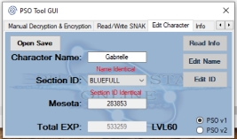 October 17th, 2025 - VMU #3 by CMA THE DOPE MAN You are currently on: PAGE 4 Page 1 | Page 2 | Page 3 | Page 4 | Page 5 | Page 6 It's time for Sonic Adventure. I'm curious to see - A:) How far they got into the game, and B:) Their Chao Garden Oh yeah they loved this game. 100% on all characters. About 17.5 hours played total. Here are some pics from the chao gardens: What the fuck no chaos! Believe me, all I found were chao eggs, and there weren't even any of those in the Mystic Ruins garden. I did not find one single chao anywhere. I'm guessing they weren't a fan of the whole chao idea. Not gonna lie, this one was a bit disappointing since I was hoping for more. OK now here's the part I've been waiting for. Phantasy Star Online character resurrection. I should note that I'm not going to delve too deep into the process of how I restore characters here. I did talk about it a little bit in my last site post. I am currently working on a guide on how I restore these which will soon be featured on the PSO part of the website. Running the guild card through PSO GUI Tool to decrypt.. Gabrielle!! Whoever you are and wherever you are out there, I found your character! It is in good hands now. The screenshot below may be hard to read depending on what device you're viewing this on, so I'll give you all the run down. Gabrielle is level 60, has 283,853 meseta on hand, has 533,259 EXP, and has a BLUEFULL section ID. I'm going to apply my PSO V1 SNAK (Serial Number & Access Key) to this character because there's a 95% chance that this is a V1 character. Once my V1 SNAK is applied and character is re-encrypted, I will copy the character back to the COPY VMU for use on my personal Sega Dreamcast console that I actually use to play online. It will get upgraded to a V2 SNAK in the process (this to my knowledge does not have any negative effects on the character, in terms of preservation). See you on the next page.