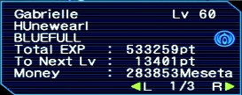 October 17th, 2025 - VMU #3 by CMA THE DOPE MAN You are currently on: PAGE 5 Page 1 | Page 2 | Page 3 | Page 4 | Page 5 | Page 6 Copying the re-encrypted PSO saves back to the VMU... Looks like Gabrielle played this character for almost 94 hours. I should note that the console I'm playing this on is my regular Dreamcast console with the smoke grey shell (moved the BBA over to it for now). This is the console that I usually play PSO online with. Alright here we go, time to go online. Boom we're in. I'm playing on the Ragol.org private server today since they are awesome. Here's Gabrielle's current stats, they weren't too far away from LVL 61: Gabrielle's guild card: Aw man no collected guild cards!!!! Gabrielle c'mon! Did you not make any friends on PSO back in the day? Sad. Gabrielle's one lonely mag: Here is what Gabrielle currently has equipped: Here is their symbol chats, they actually made some custom ones: See you on the next page!